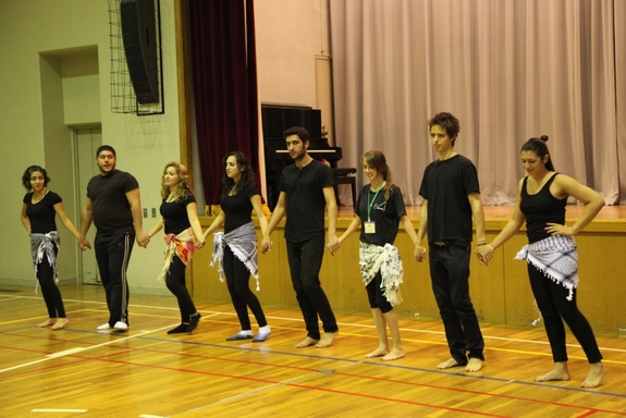 交流会の途中では余興として、イスラエル・パレスチナの学生による中東の踊り「ダブカ」と、日本学生による「ソーラン節」を披露しました。