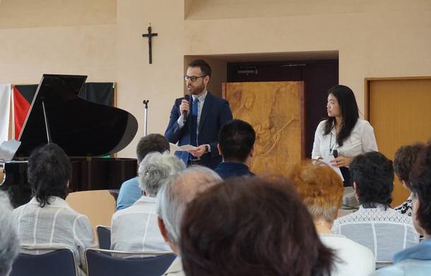 代表の井上のあいさつで始まり、イスラエル大使館のヨナタン一等書記官のお話し、過去のプロジェクトの参加者によるプロジェクト紹介、そして家田紀子さんのオペラコンサートを実施しました。
