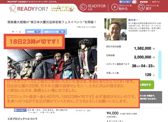 いよいよ残り1日となったこのプロジェクトのゴールラインに向けて、facebookへの投稿をつらつらと綴ったのでこちらでも投稿させていただきます。