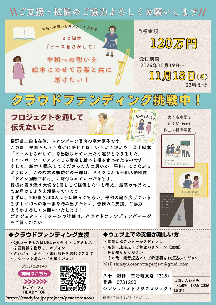 ご支援・応援ありがとうございます!クラファンのチラシを作成しました!