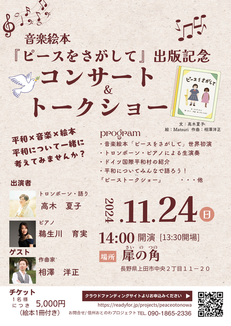 クラウドファンディング挑戦中と11月24日に開催する出版記念コンサートのチラシを作成しました!