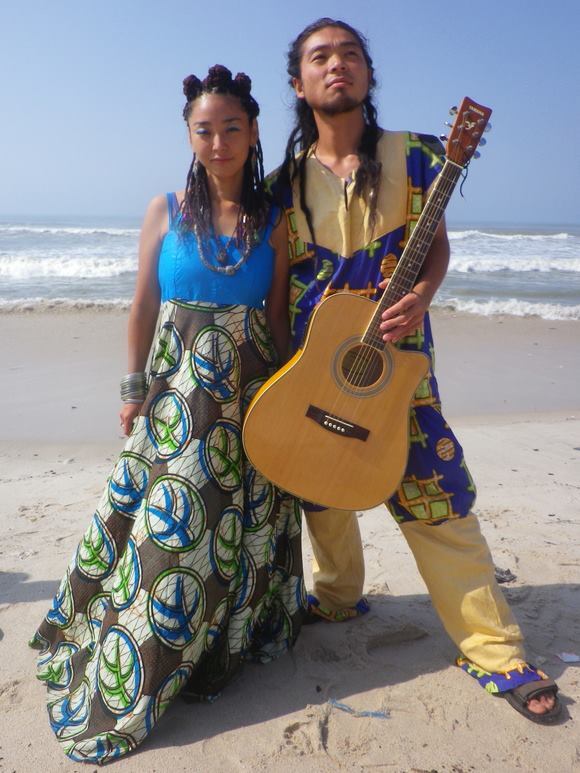 唄とギターと太鼓とポジティヴを背負って音に導かれるままネパール、インド、西アフリカ地方ガーナ、ブルキナファソ、トーゴ、アメリカ大陸 ニューヨーク、カナダ、etc……… 日本とアフリカの音楽のスピリットをベースに大地の音とをこねあわせてこしらえたSOUNDを奏でながら各地の聖地や部族のお祭り、フェスなどに出演、地域の暮らしにとけ込み地球放浪中。