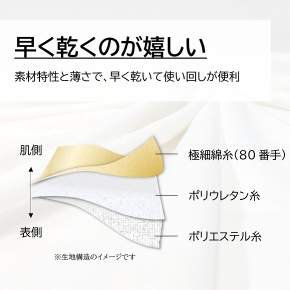 上質な綿糸と化繊をハイブリットにした薄手の生地で