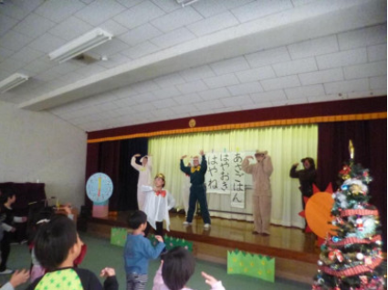 幼稚園で上演していた「はやねはやおきあさごはん」の生活習慣啓発劇は、