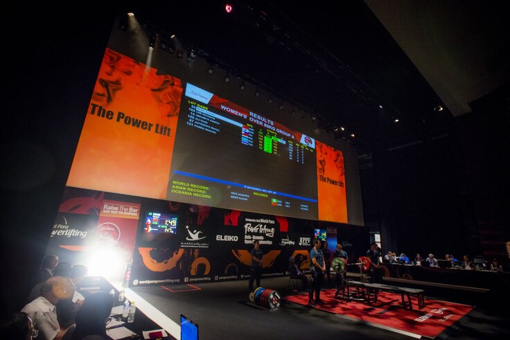 パラ・パワーリフティングの試合は、ステージに立つ選手にスポットライトが当たります。