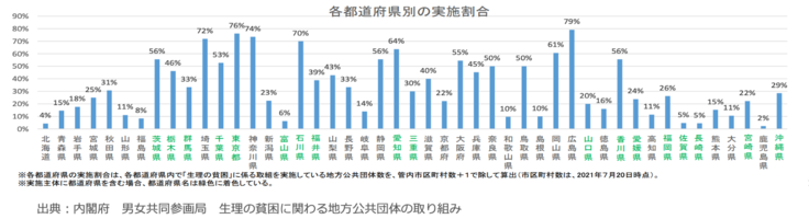 (内閣府 男女共同参画局 生理の貧困に関わる地方公共団体の取り組み(2021年7月20日時点)