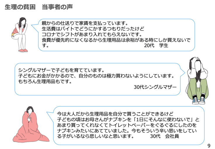 コロナ禍により、様々な活動の中から「生理の貧困」により苦しんでいる女性の声を聞くことが増えました。