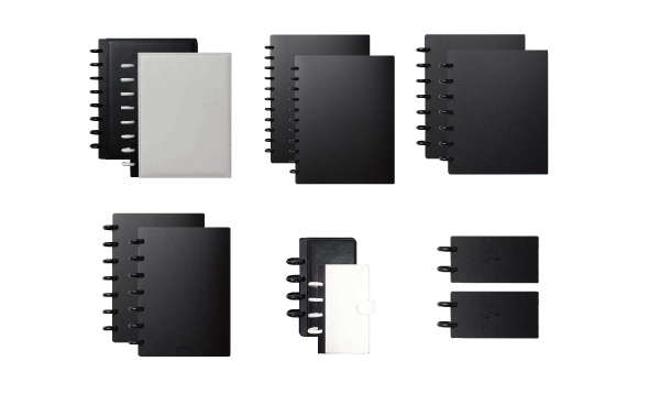ページを縦に斜めにすると、カバー、用紙、ファイルが簡単に取り付け取り外し、メモをカテゴリー分けしたり、クリアファイルの隣に用紙を入れて管理したり整理整頓が簡単にできるカスタマイズノートとして2015年7月に発表されました。