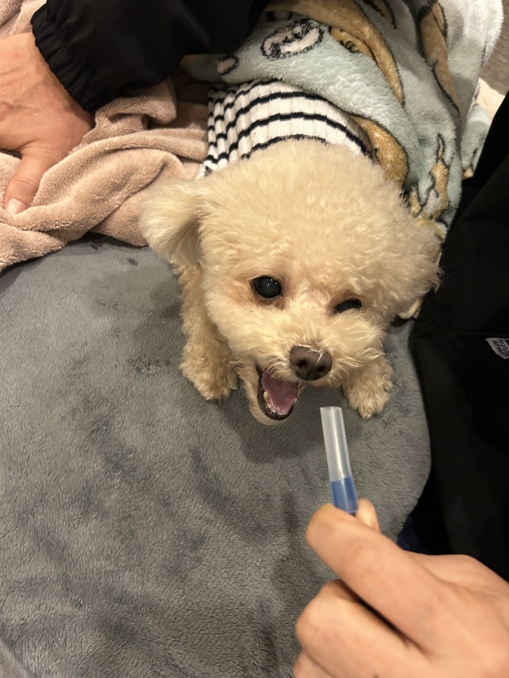 手術前検査やペロの状態が良くならないと手術の予約ができないため、その日は薬をもらって帰宅しました。