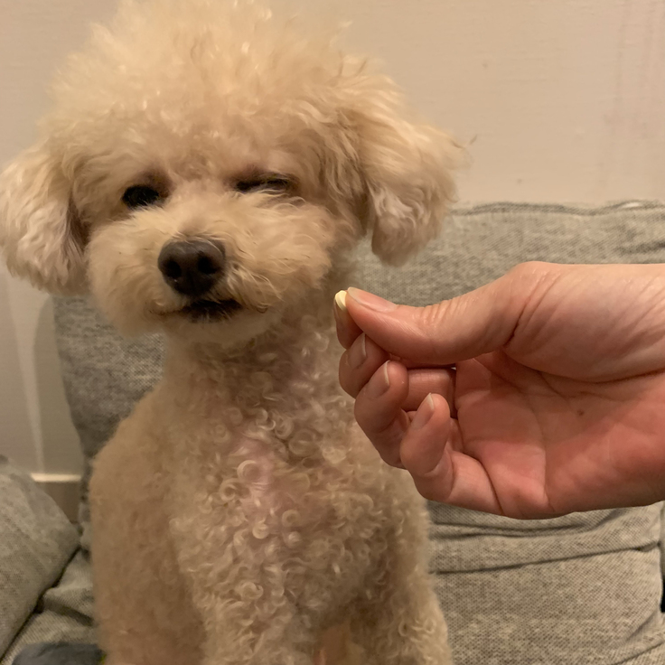 ペロはお薬に敏感で、混ぜたり包んだりしても、すぐに気づいて吐き出してしまいます。。