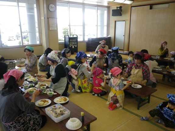 私たちが設立当初より支援を行ってきた発達に不安のあるお子さんが、震災時に、避難所生活でパニックを起こし、ご家族が車内で寝食をしていた経験を聞きました。生活パターンが崩れることがとても苦手なお子さんにとっては避難所生活は私たちが体験する何倍もの苦痛を伴います。そのようなお子さん対象には、避難せざるを得ない状況を想定し、自宅や学校以外での寝食経験を増やすべく、ひろば内で家族以外の方々と食事をする訓練なども行っています。食事訓練は同時にお母さん方の交流の場としても大きな効果があります。