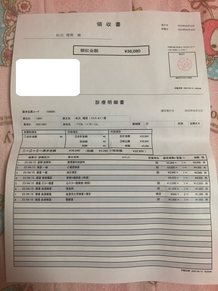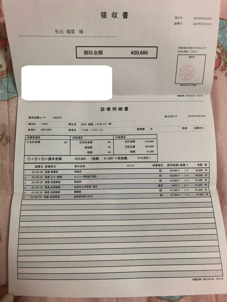 上記にも記載しておりますが、ページ上に掲載している診断書や診療明細書などの資料は全て動物病院から掲載の許諾を得ております。