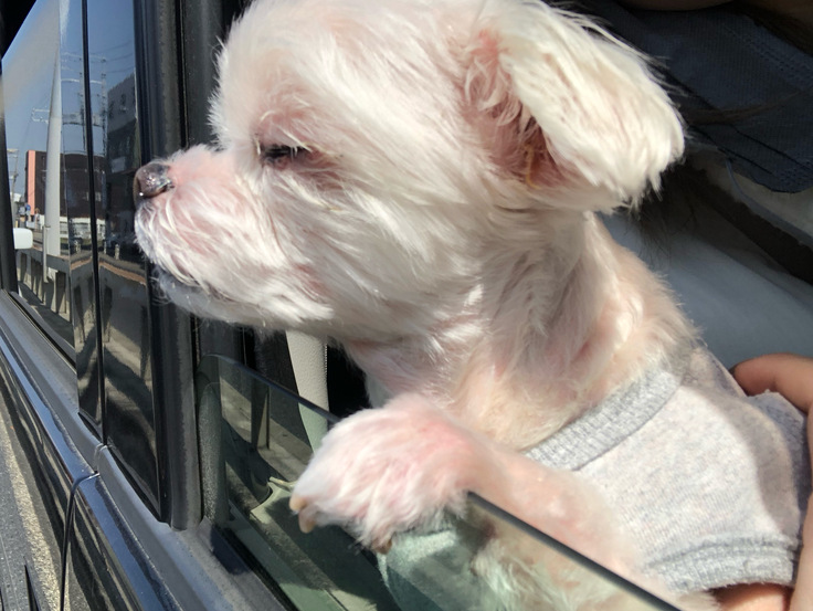 大きな公園でのお散歩は大好きで抱っこされながら車の窓から風を感じるのも大好きになりました。