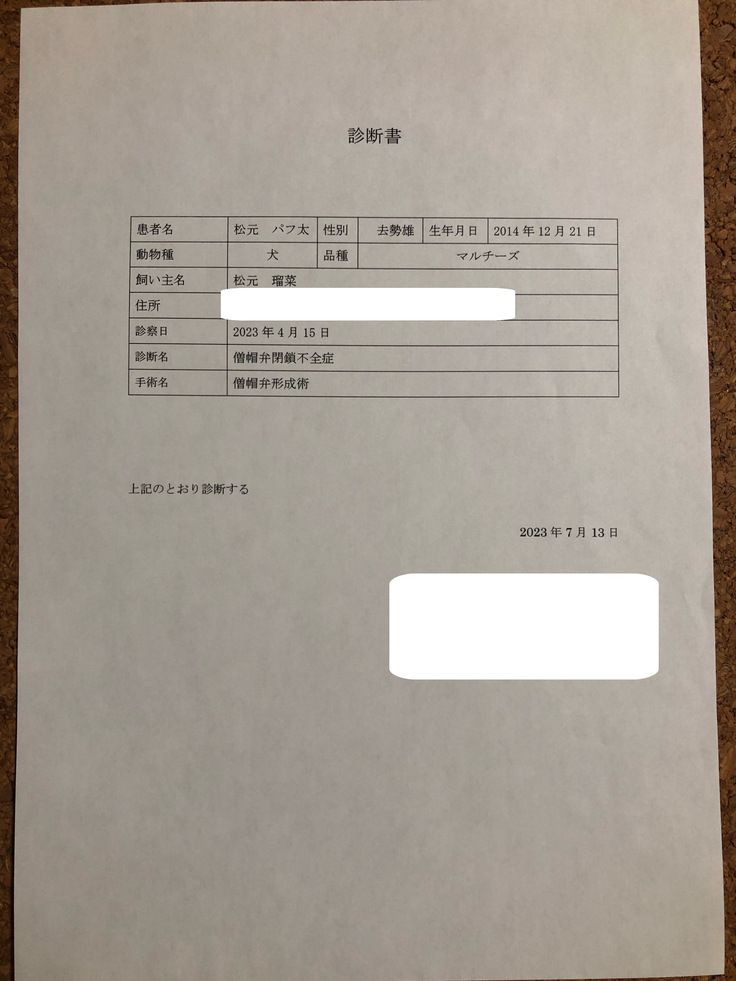 2年前に僧帽弁閉鎖不全症と診断されました。
