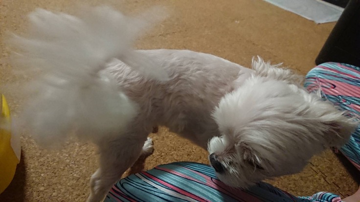 今朝は朝から元気でどこに行くのも着いてきたり自分のしっぽを追いかけ回してました(笑)