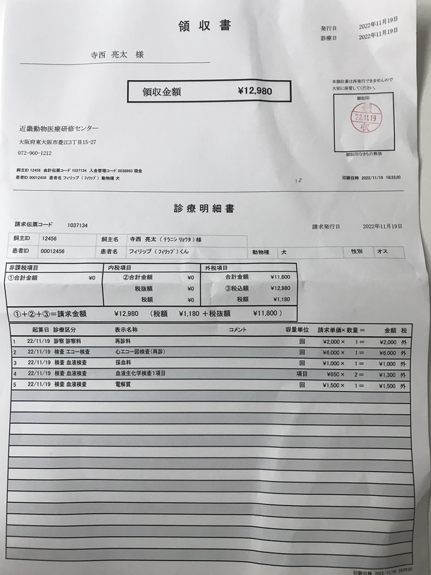 早く手術を受けさせたいのですが、順番待ちにより、症状を薬で抑えながら1月の手術日まで体調管理をすることになりました。