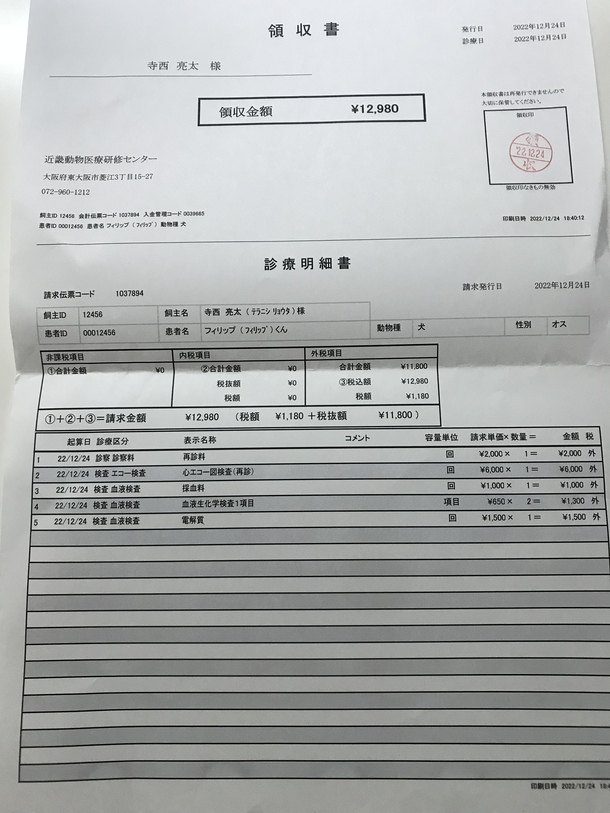 心臓の大きさは肥大した状態のまま、血液の逆流も前回と同じ状態でした。