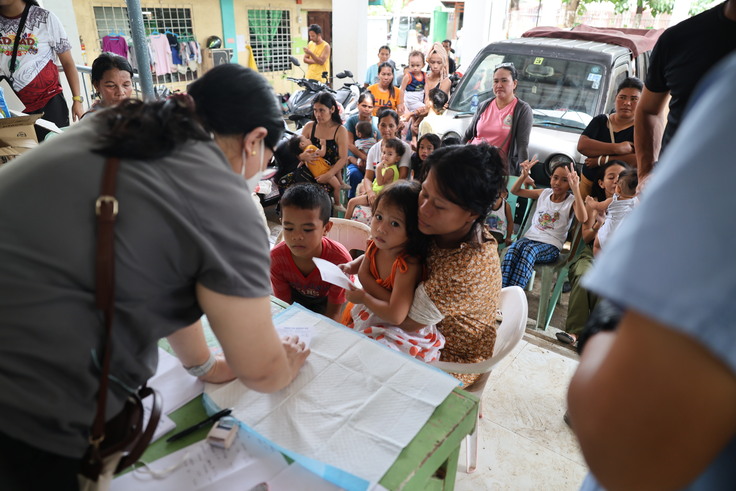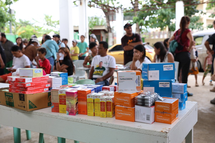 私たちはその日のうちにセブ市内の薬局を回って必要な医薬品を調達。翌9日朝、診察開始前の診療所に届けました。避難者や周辺住民の方々が朝から続々と訪れ、医師の診察を受けたあと、支援物資である医薬品を早速受け取られていました。