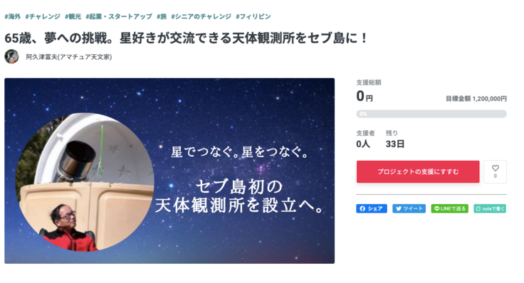 ②一緒にプロジェクトを成し遂げた支援者としてルーフおよび天文メディアHPに名前を記載
