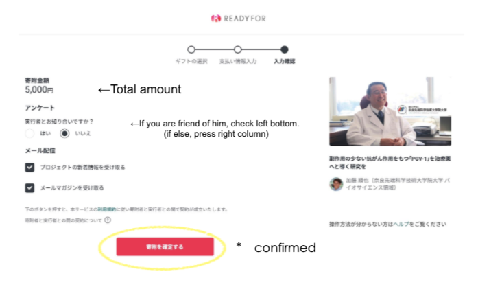 Once you click the red button, you will receive an email from Readyfor (no_reply@readyfor.jp) and you will be asked to verify your email address by clicking the first URL on the email.