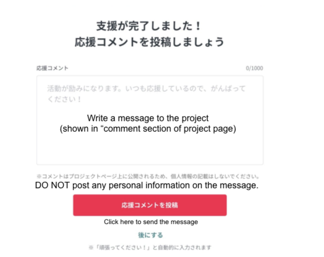 Please write your message to the project (the message will be listed on the project page) and send the message by clicking the red button below the blank.