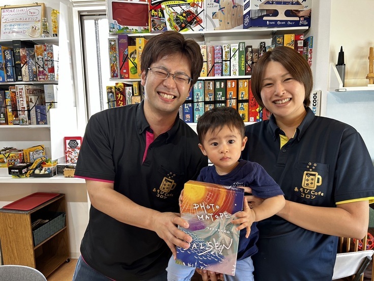 「あそびcafeコロンといえば、年齢問わずゲーム好きが集うカードゲーム・ボードゲームの殿堂‼︎といえるでしょう。そんな世界中の珍しいゲームが集まる場所に、地元鳥取大山発の「フォトマトペ」。自由でゆるくて誰でも楽しめる、しかもこの辺りの写真いっぱいだからこその"あったらいいな"でオススメしました!」