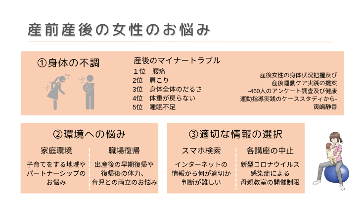 寅嶋が17年間携わってきた産後女性の健康支援講座で行なってきた調査では…