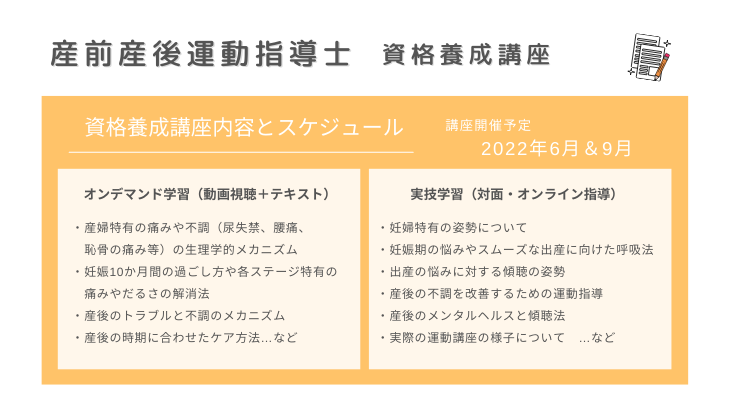 ②産前産後運動指導士の養成講座を開講