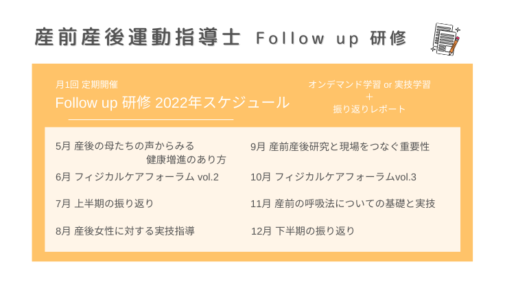 産前産後運動指導士の資格取得者は現在6名おり、2021年度は毎月1回の定期的なフォローアップ研修を行ってきました。