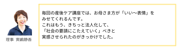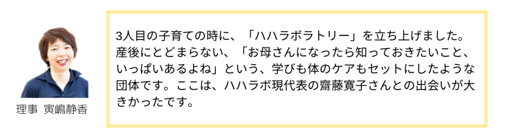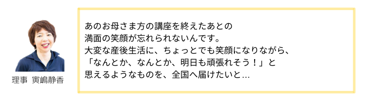 【理事 寅嶋静香の15年以上の実績と産前産後の女性からのリアルな声】