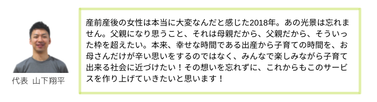 僕は、子どもたちの成長を支援をする法人を運営しながら、たくさんのお母さんたちの子育ての サポートもしてきました。そんな中で切実に思うのは「お母さん、もっと自分を大事にして!」 ということです。子育ての大変さを家庭や地域社会や制度が支えられているかというと、この国はまだまだ後進的です。だからこそ「お母さんこそ自分ファーストが大事!」って言いたいです。 産前産後であれば尚更です。 このプロジェクトは、科学的知見に基づきながら、お母さんたちが身体を整え、自分を大事できるための一助となるものです。お母さんが自分を大事にしているから、結果として子どもも大事にできる。そんな未来思考のプロジェクトを僕は全力で応援します!