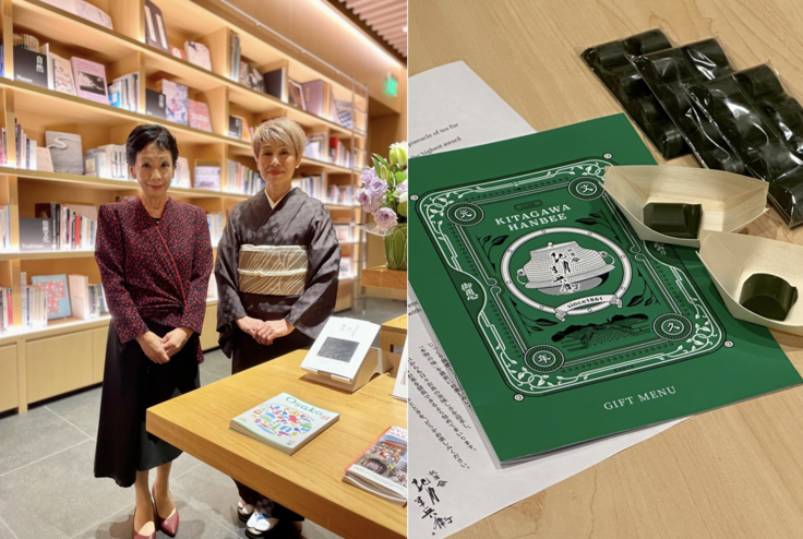 北川半兵衛さんの香り立つ抹茶チョコレートには英文のご案内をお配りしました。