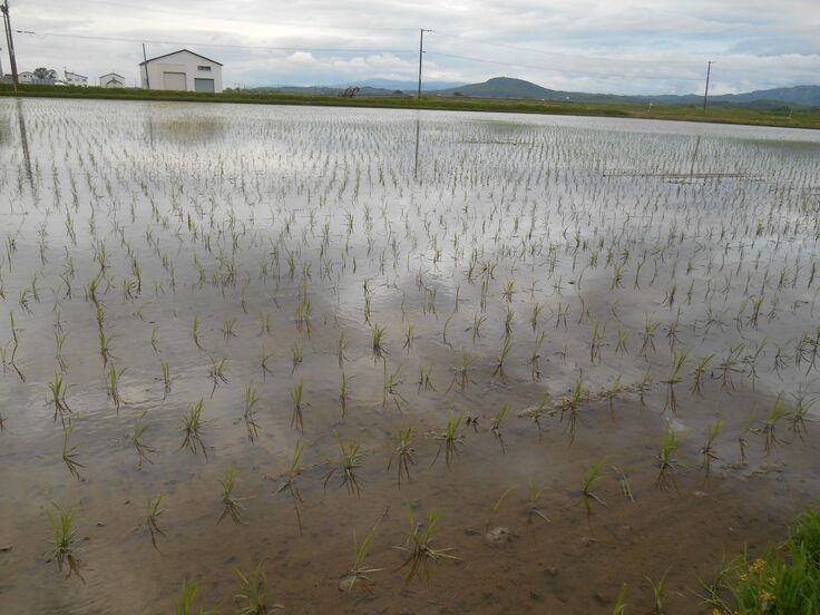 新十津川町もようやく田植えがほぼ終わり、田んぼでは小さな稲が育ています。