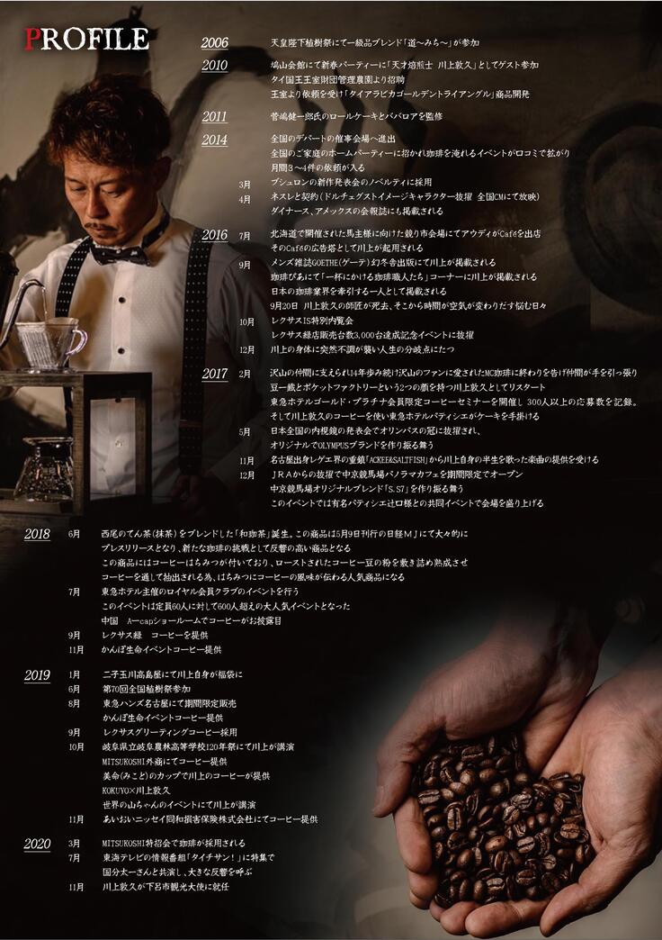 さらに、1杯の珈琲との出会いでした。珈琲好きのピアノプレイヤーの演奏を聞きながら飲んだ「川上敦久氏が掲げる~1杯の珈琲に詰め込まれた1000杯の物語~」この珈琲との出会いでした。