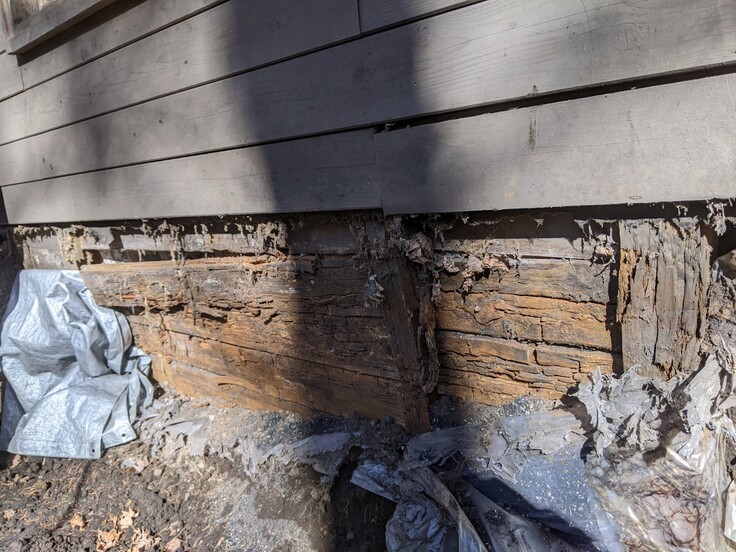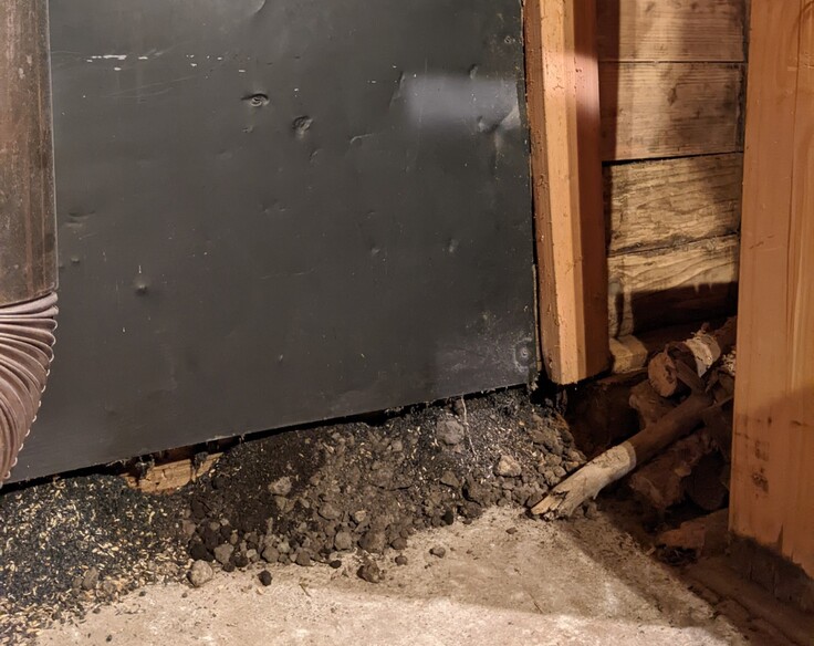 掘ってみると(防水シートは張っていたものの)壁面は完全に腐朽しておりました。