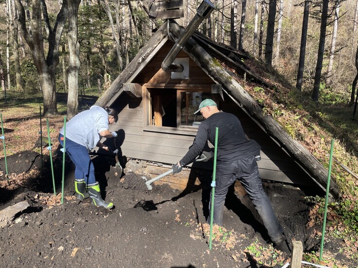 まず取り組み始めているのが、2018年のベアドッグ繁殖育成のために建築した竪穴式の小屋の改築作業です。