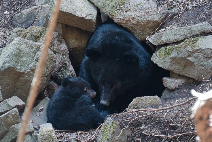 (写真)里山で放棄された炭窯で冬眠し子育てするクマ