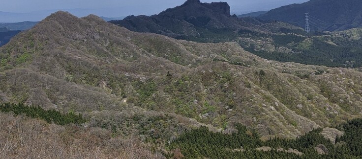 (写真)野生鳥獣により散布されたと思われる山桜が点々と咲く