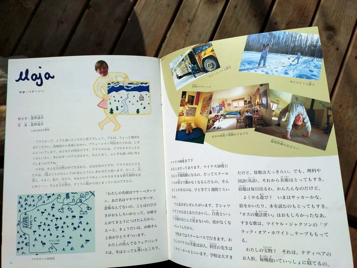 なんと!! お世話になった方もいらつしゃるかと思います福音館書店の子供向け科学雑誌「月刊 たくさんのふしぎ」の1994年4月号(第109号)に、道夫さんがペダーソン家の末娘のマヤさんにフェアバンクスの暮らしについて聞いているページ(p34‐39)があります。