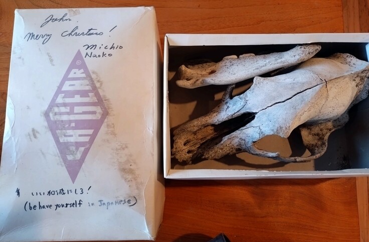 ジョンさんは様々な哺乳類の頭骨を収集し、形態比較されることをライフワークとされておられますが、そんなジョンさんも私に「君に見せたいものがある」と、嬉しげな顔をしてこんな一品を持ち出してくれました。