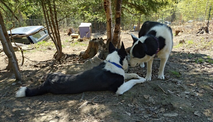 レラが少しでも安心して繁殖に臨めるように、ニルスさんやパハカスと極力行動を共にしながら、彼らとのよい関係性を築くこと、(そり犬以外の)レラの近くで飼育されている他の犬たちとも少しでも友好関係を築くこと、レラの気分転換のためにもベアパーツ訓練などをしてきました。