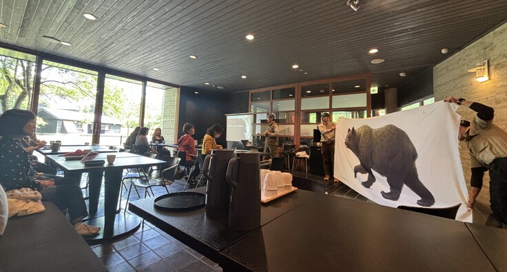 また6月以降、多くの皆様(6箇所、200名以上)にクマとの遭遇防止のためのレクチャーなどを行いながら、人と森、クマとの共存に関する普及啓発を行ってきました。クマ保護管理への理解や協力を得る上でも、タマの存在は本当に大きな力になります。