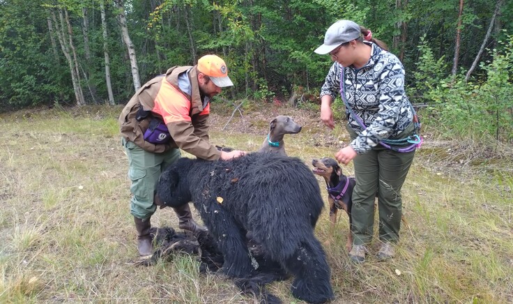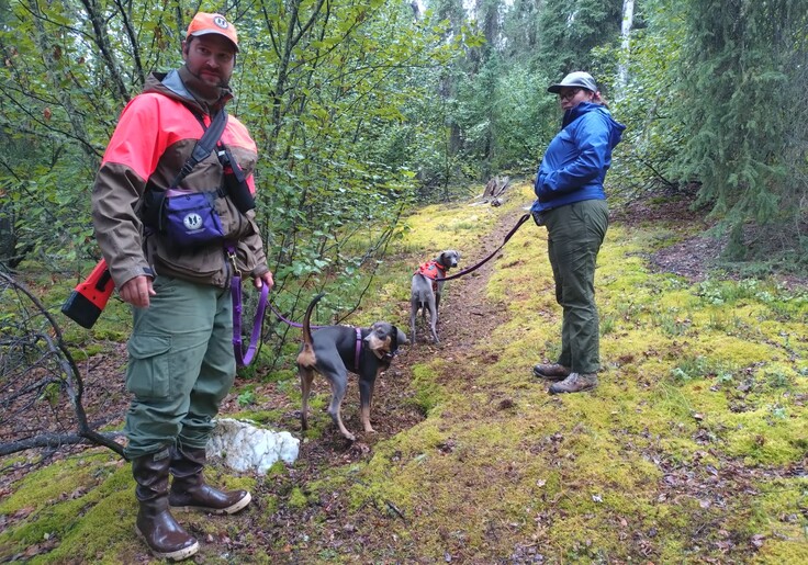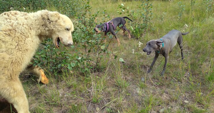2頭とも良い反応でしたが、特に6ヶ月のジーンが良く、陸上追跡、車内追跡(匂いを嗅ぎ当て吠える)、熊と出会ったときの身のこなしなど、私が見ていても「これはいい」と思えました。