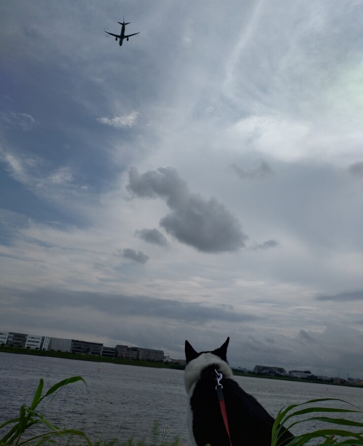 レラも落ち着いてトイレを済ませ、空を見上げると、飛行機が通過していきます。