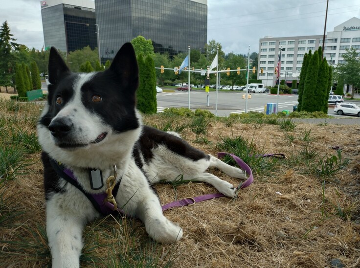 そのまま、行きのフライト前にレラと歩いた空港近くの多摩川の河川敷に行き、レラをおトイレに出しました。
