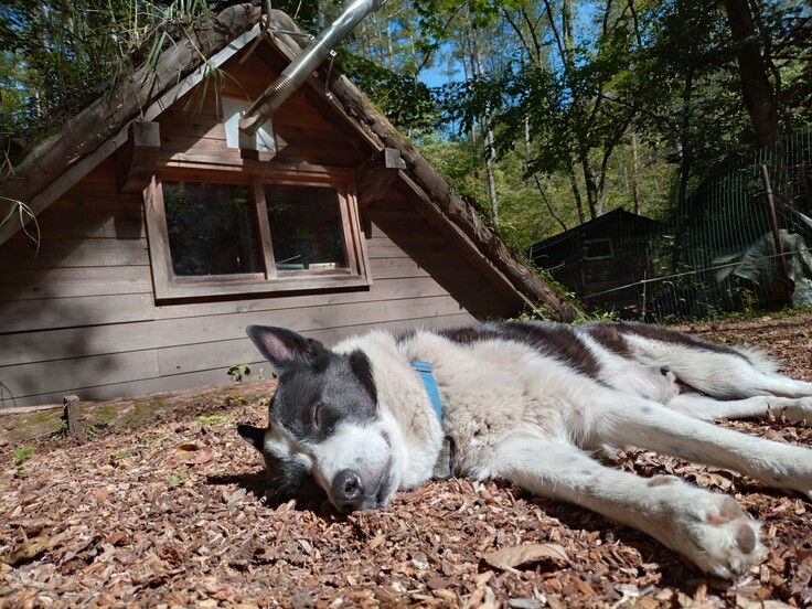 (写真)産後に繁殖小屋前の日向で休むレラ