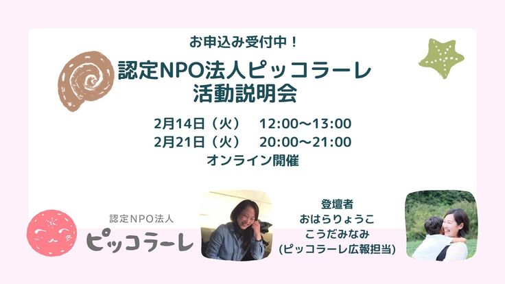 今回は、ピッコラーレが毎月開催しているオンライン活動説明会のご案内です。