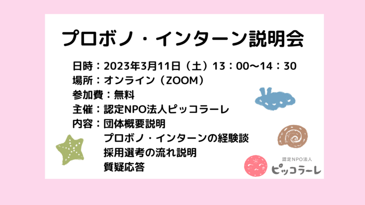 「認定NPO法人ピッコラーレ プロボノ・インターンオンライン説明会」