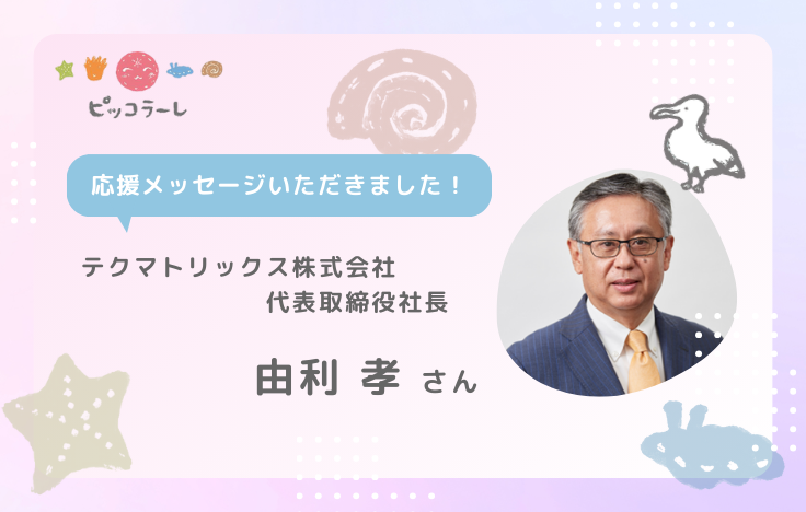 本日は、テクマトリックス株式会社代表取締役社長の由利孝さんからいただいた応援メッセージをご紹介します!!