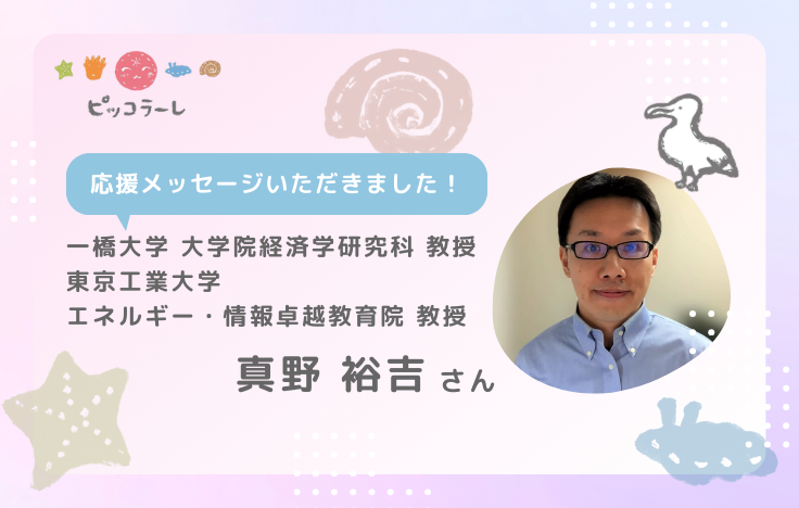 本日は、一橋大学 大学院経済学研究科 教授、東京工業大学 エネルギー・情報卓越教育院 教授の真野裕吉さんからの応援メッセージを紹介します✨